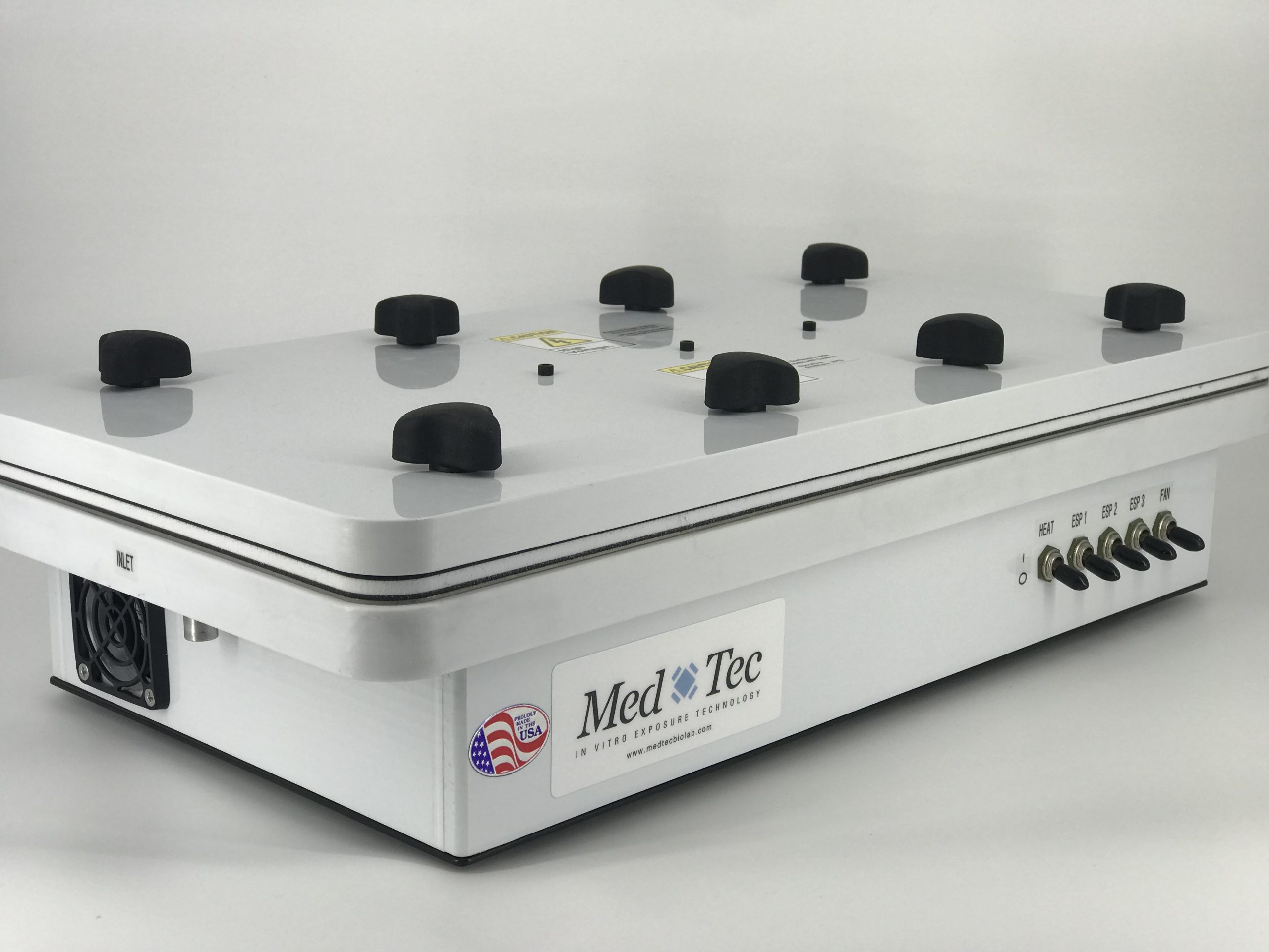 The exposure chamber should be used in conjunction with MedTec’s Heated Enclosure, diffusion humidifier, dryer, temperature/RH sensor for optimal performance.